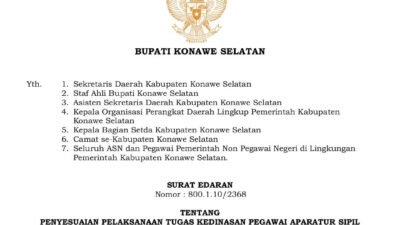 ANDOOLO – Pemerintah Kabupaten Konawe Selatan (Konsel) resmi mengeluarkan kebijakan penyesuaian sistem kerja bagi Aparatur…